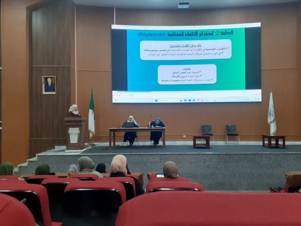 انطلقت فعاليات سلسلة الورش التدريبية المنظمة من قبل المكتبة المركزية بمدرج S على مستوى جامعة الجزائر 3، والتي توجت بمشاركة متميّزة من الأساتذة، الباحثين والطلبة. تميّزت الجلسات بمستوى عالٍ من التفاعل والاهتمام بمضامين الورشات، وهذا يدلّ على وعي المجتمع الأكاديمي بأهمية مهارات البحث في البيئة الرقمية والتحكم في برمجيات إدارة مصادر المعلومات.وإيمانًا منا بدور التعاون المؤسسي في إنجاح المبادرات العلمية، نتقدّم بخالص الشكر والتقدير لإدارة جامعة الجزائر 3، وكلية العلوم الاقتصادية والعلوم التجارية وعلوم التسيير على تقديمهم التسهيلات والدعم التي أسهمت بشكلٍ جوهري في نجاح هذه الأنشطة.